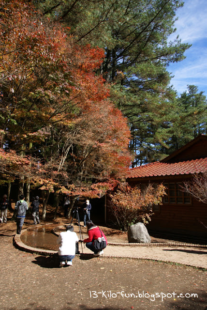 小徑繞至松盧的後方,沒想到這邊倒是別有洞天。沿著小徑站了一排乏人問津的楓樹,跟松盧前的明星們比起來,這裡的人氣明顯少了不少。或許是因為這邊的楓樹不及松盧前的大顆吧?